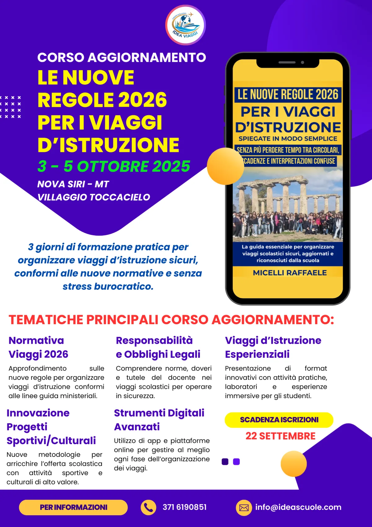 Partecipa al CORSO GRATUITO del 3-5 OTTOBRE 2025 per scoprire gli strumenti necessari per trasformare i viaggi d'istruzione in esperienze indimenticabili e formative.